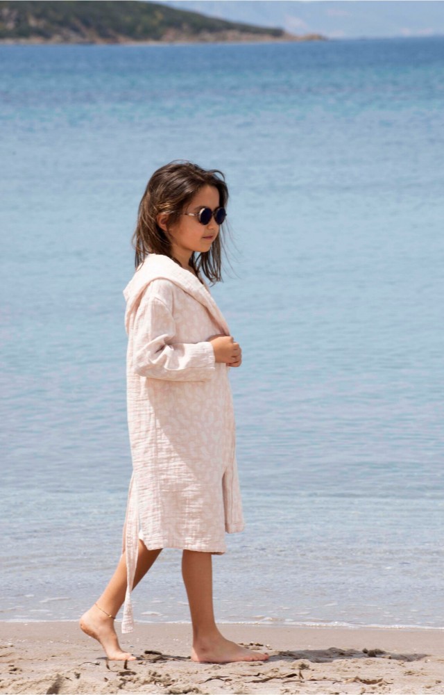 SUN LESTOFF Jakarlı çocuk bornozu (2-4 Yaş Pembe)