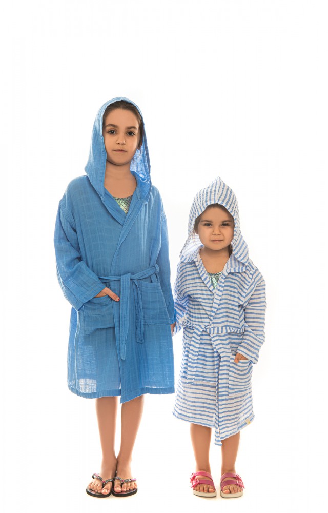 müslin çocuk bornoz (0-2 Yaş Mavi çizgili)
