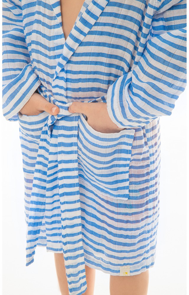 SUN LESTOFF müslin çocuk bornoz (0-2 Yaş Mavi çizgili)