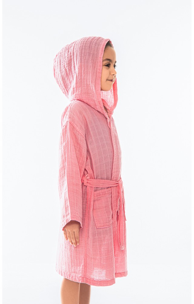 müslin çocuk bornoz (0-2 Yaş Pembe)