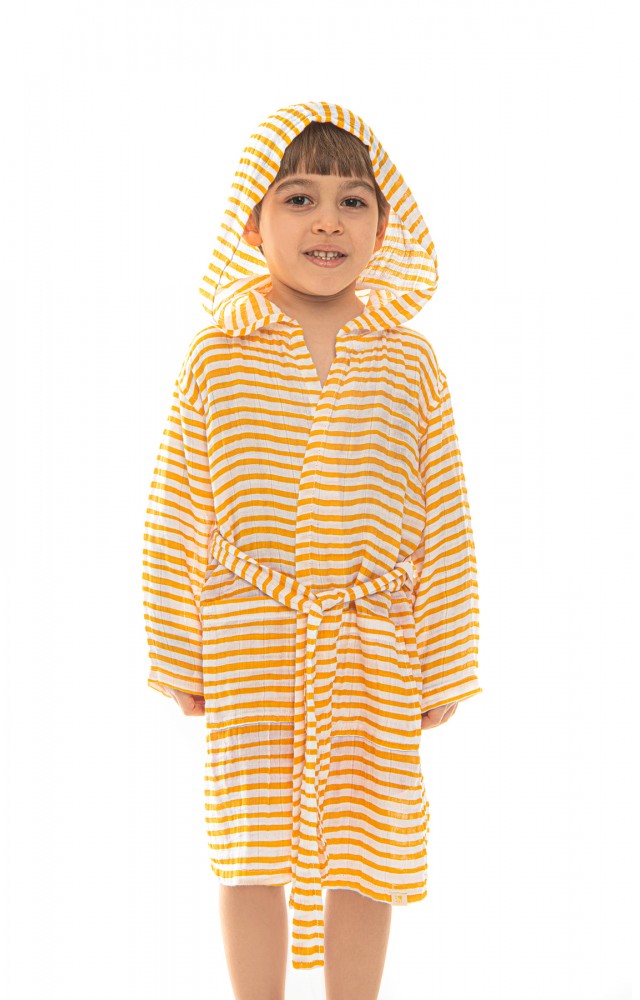 müslin çocuk bornoz (0-2 Yaş Sarı çizgili)