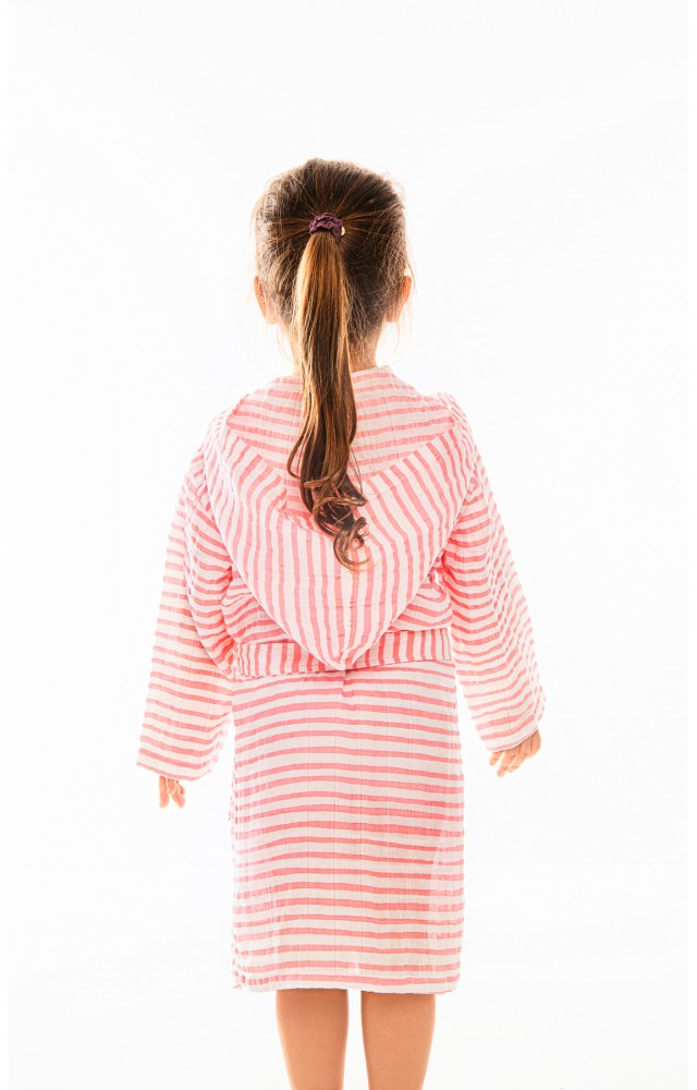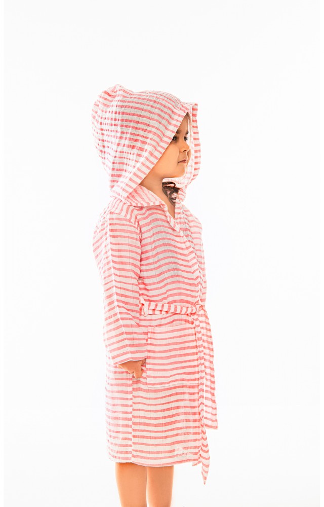 SUN LESTOFF müslin çocuk bornoz (2-4 Yaş Pembe çizgili)