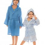 müslin çocuk bornoz (4-6 AY Mavi çizgili)