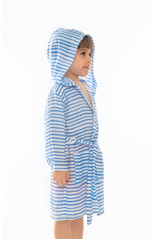 SUN LESTOFF müslin çocuk bornoz (4-6 AY Mavi çizgili)