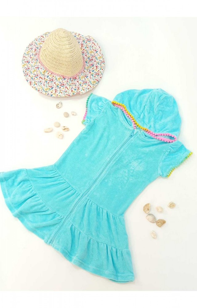 çocuk havlu plaj elbisesi (6-7 Yaş Mavi)