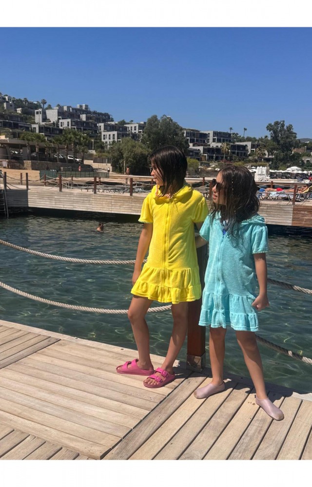 çocuk havlu plaj elbisesi (11-12 Yaş Sarı)